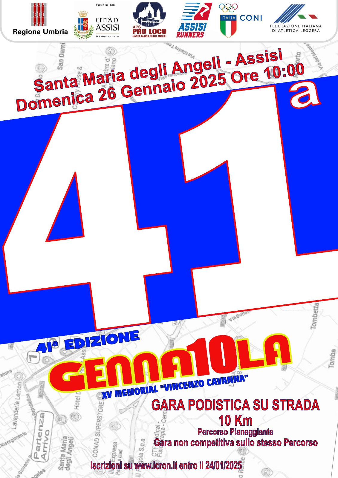 L'organizzazione della XXXXI EDIZIONE della “Gennaiola” (manifestazione podistica sulla distanza di Km.10,00) è della a.p.s. pro loco di Santa Maria degli Angeli in stretta collaborazione con l'associazione sportiva “Assisi runners” sotto l'egida di FIDAL ed il patrocinio della Regione Umbria Provincia di Perugia e Comune di Assisi